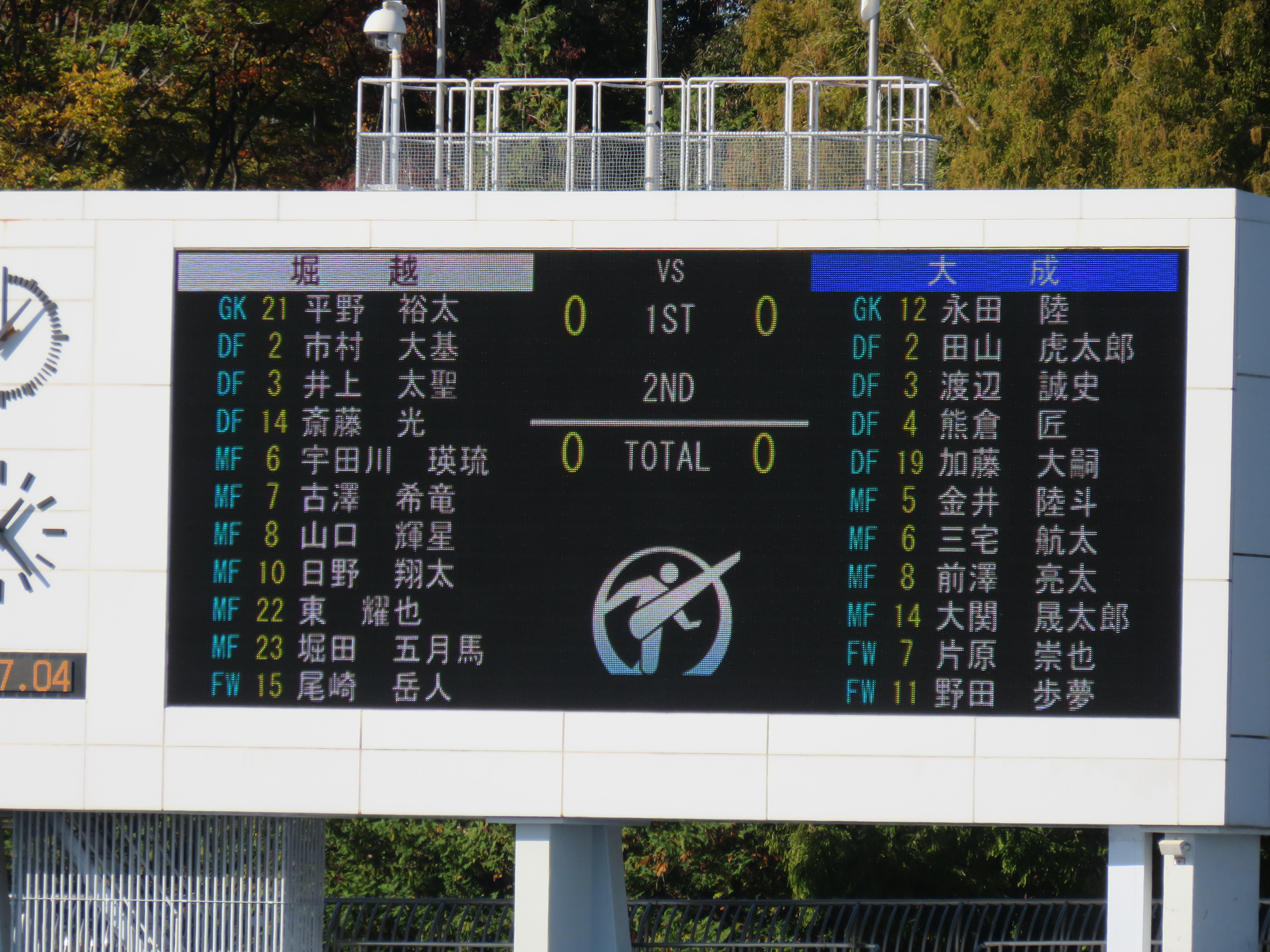 試合、前半は0対1で堀越がリードして折り返し、後半戦に入って大成が1点を返して同点としましたが試合終了間際に堀越が1点を追加。