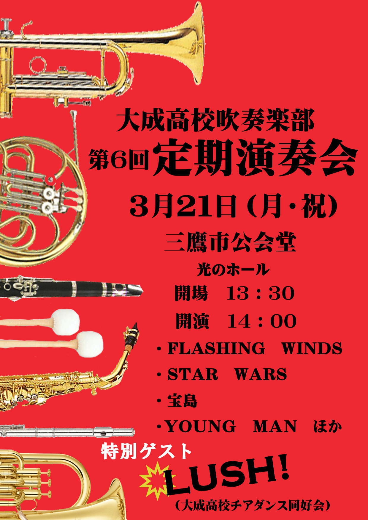 吹奏楽部では、下記のとおり定期演奏会を開催いたします。