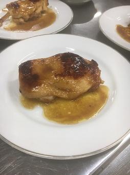 焼く前に鶏肉をオレンジジュースに付け込んでいたそうです。
