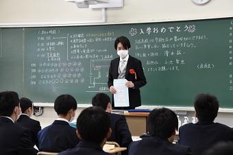 新入生代表挨拶では、3年間の高校生活の決意を語ります。